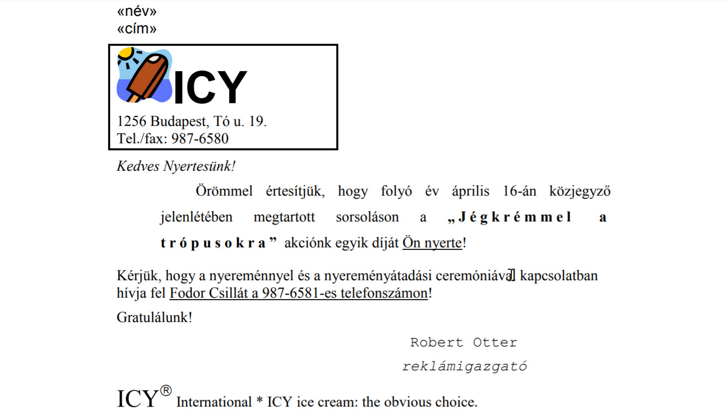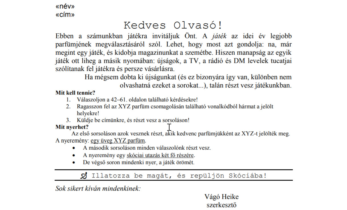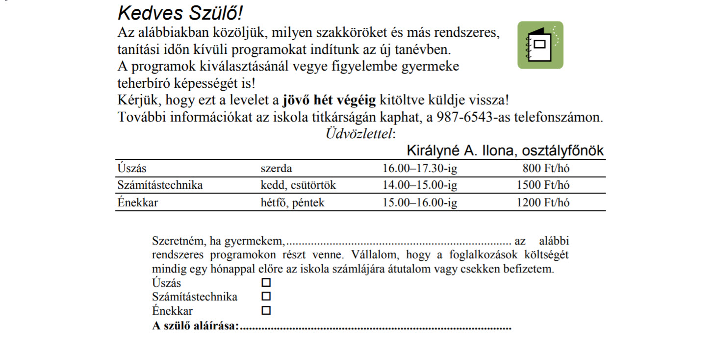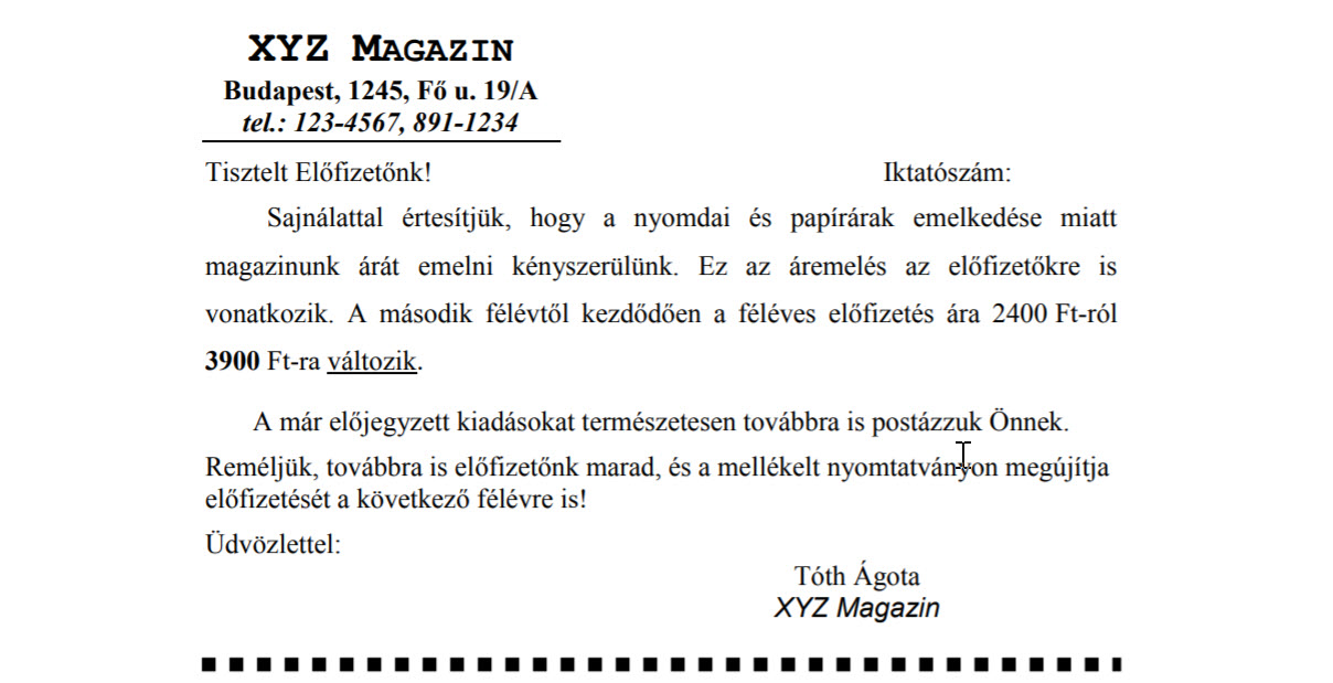 Rövid üzenet: