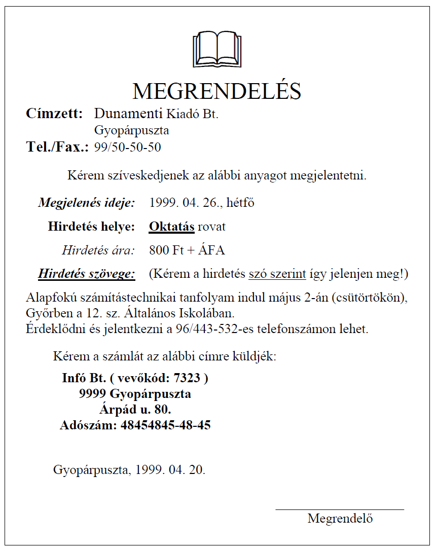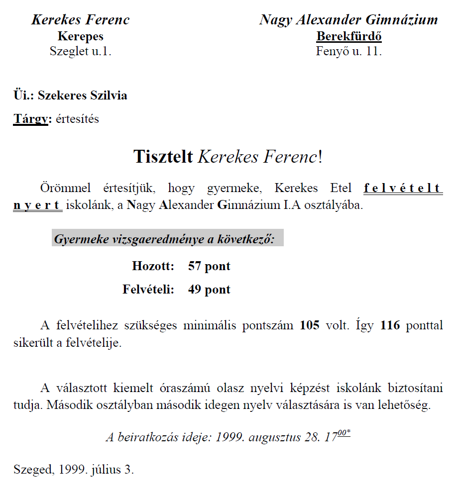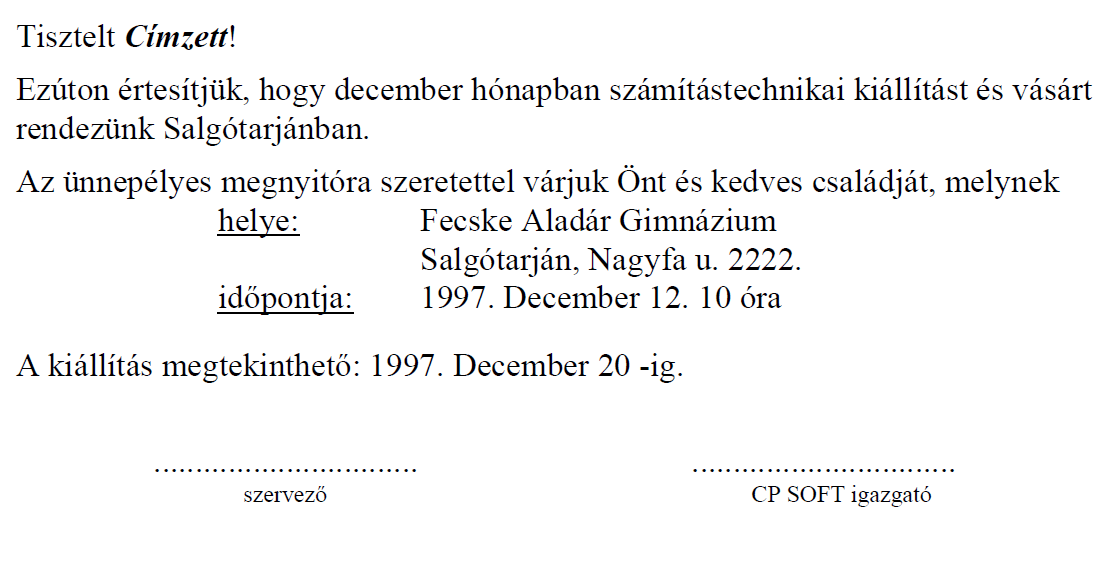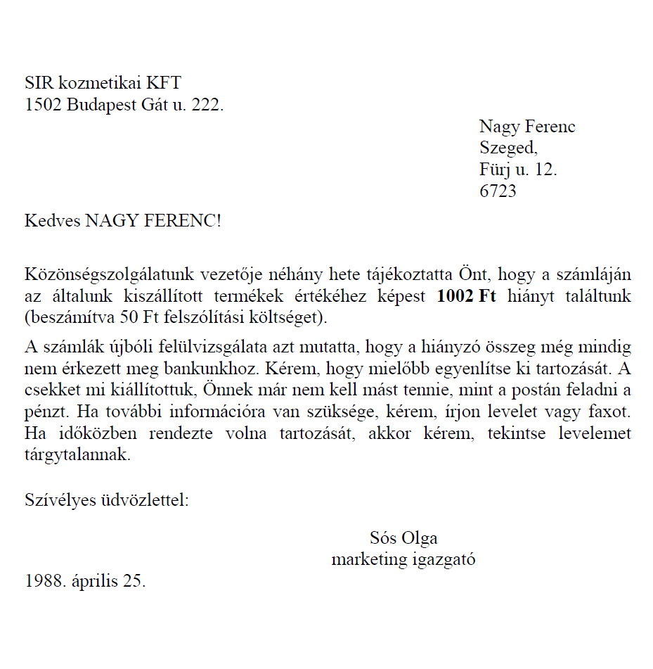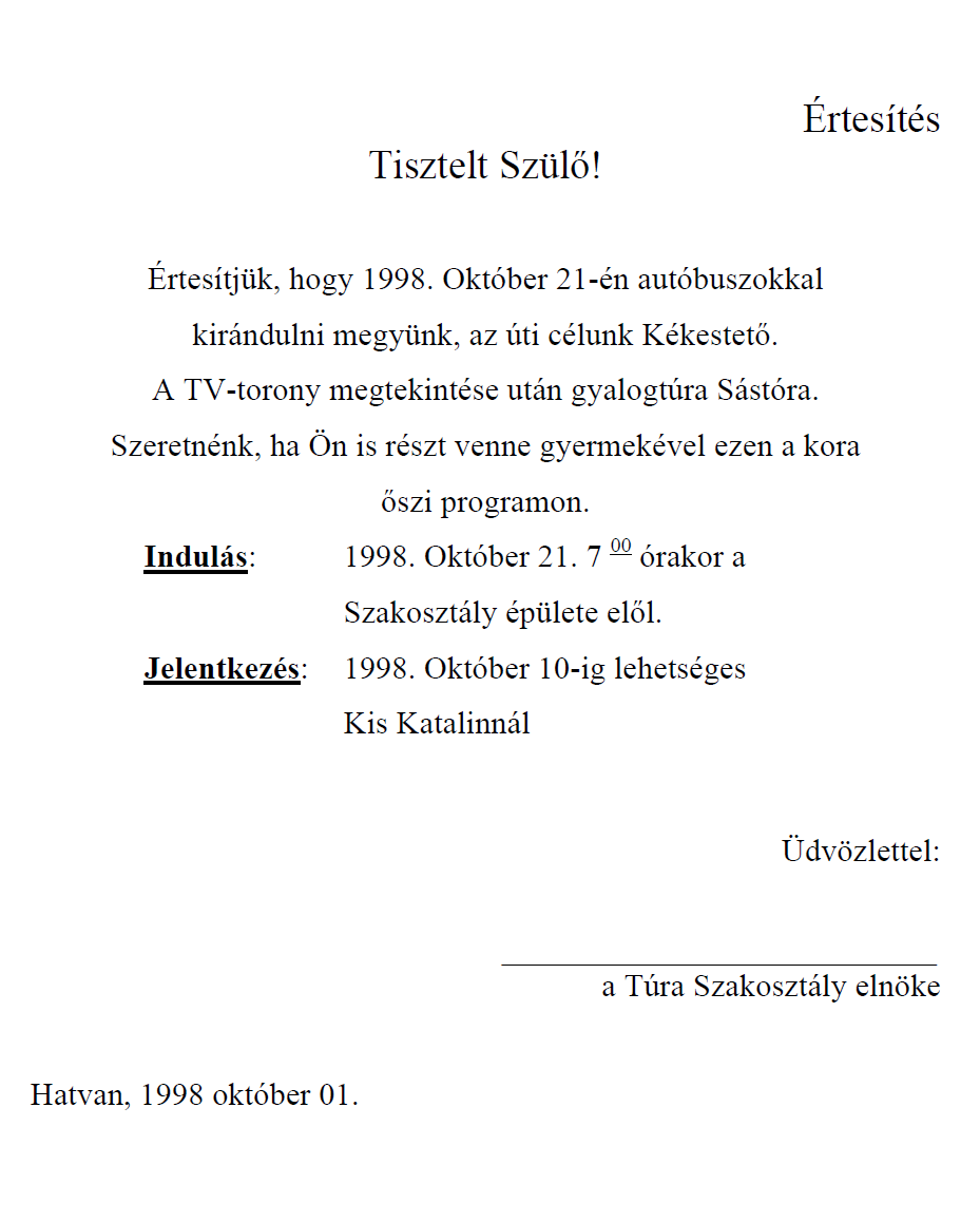 Rövid üzenet: